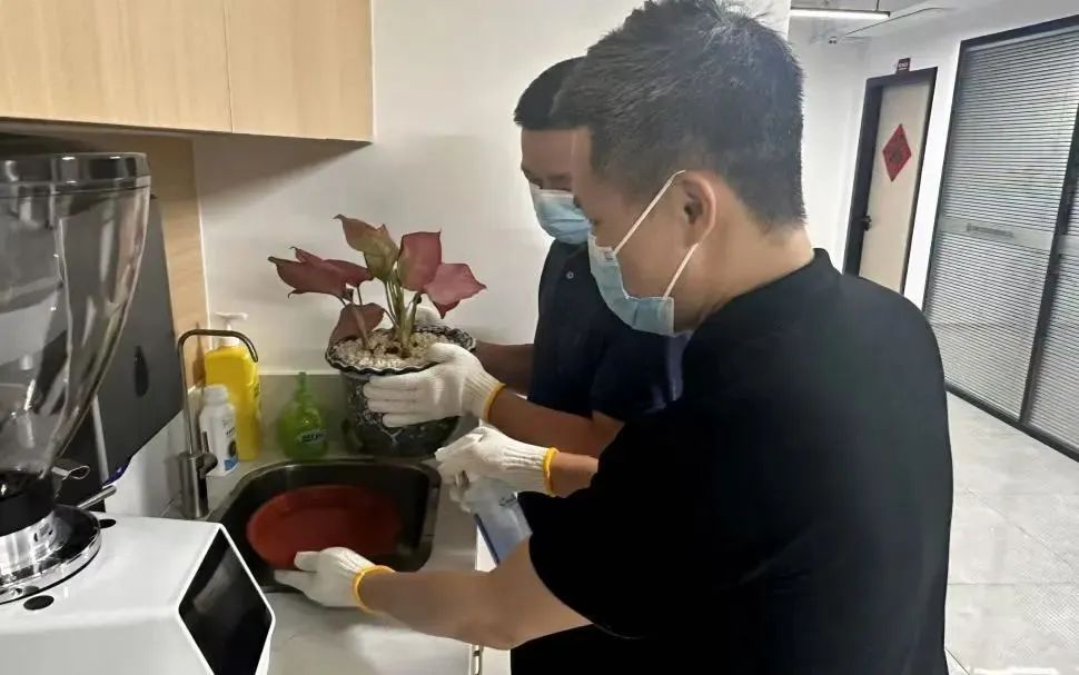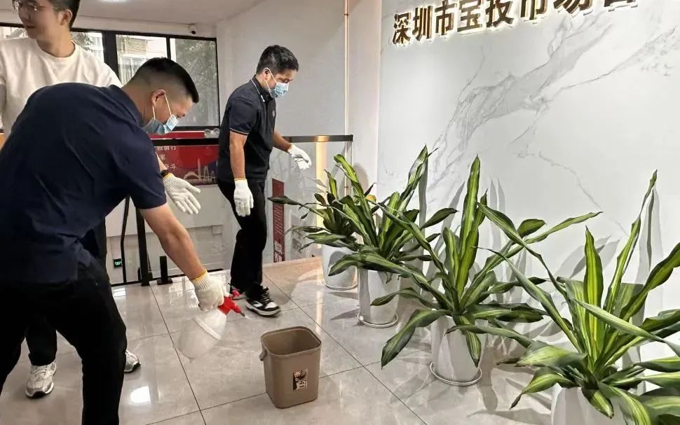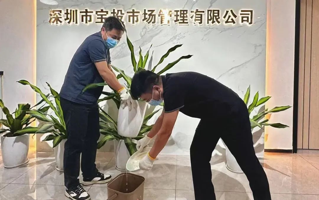 宝投市场公司以身作则,组织公司员工对办公场所开展大扫除,重点排查花盆托盘、塑料盒、冷藏设备接水盘等隐蔽积水容器,确保每日清理并倒置存放,从源头遏制蚊虫孳生,切实筑牢病媒生物防控防线。