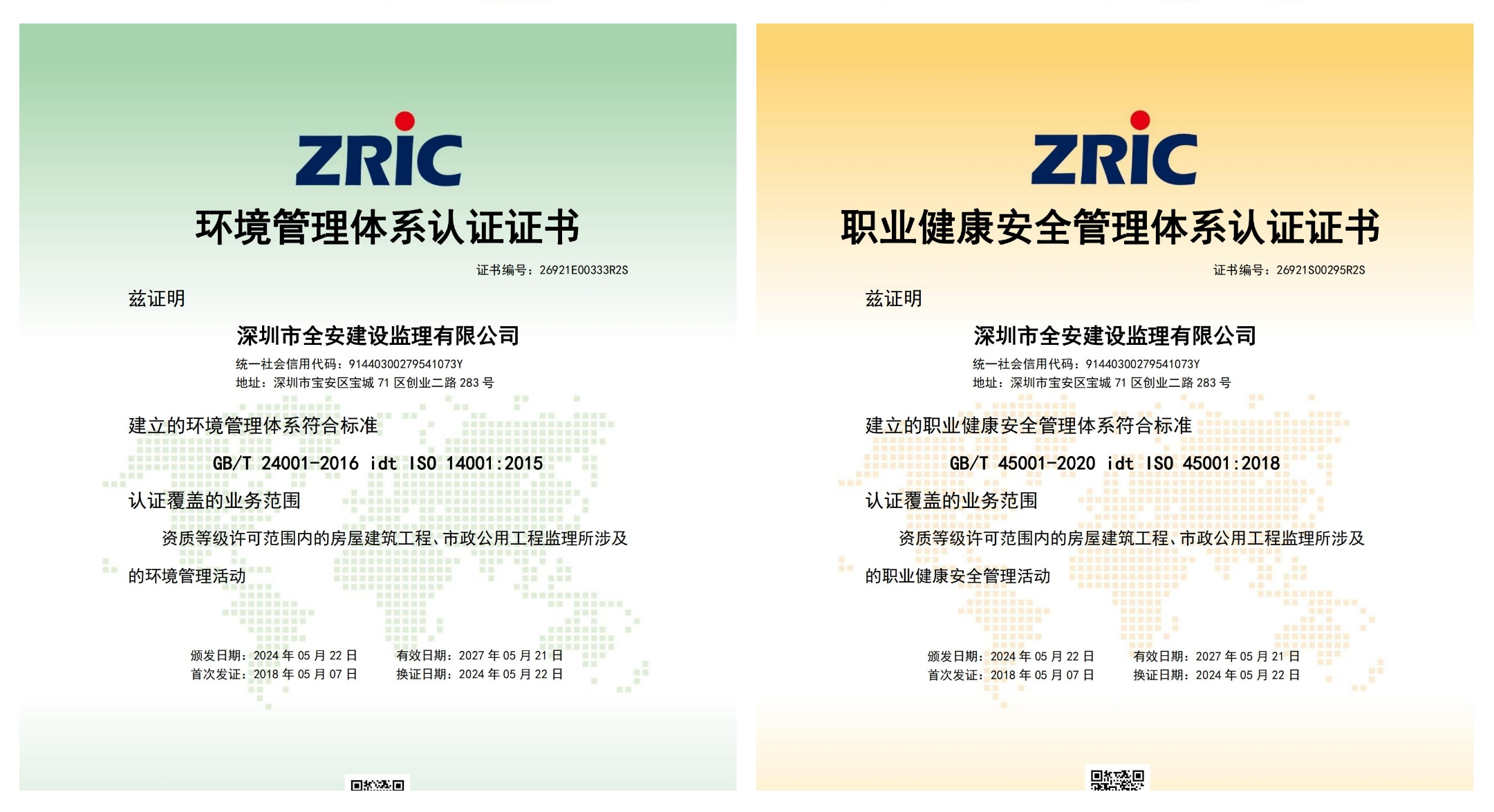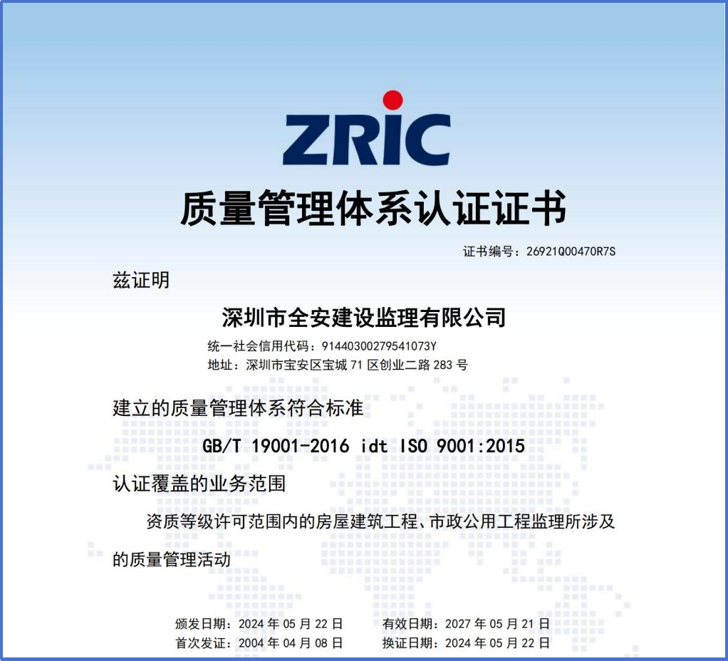 作为深圳市国有企业中同时拥有房屋建筑工程、市政公用工程监理双甲级资质的企业,宝投集团所属全安监理公司2025年成功通过ISO复审认证,为公司持续稳健前行增添新动能,再次擦亮专业服务与卓越管理的金字招牌。