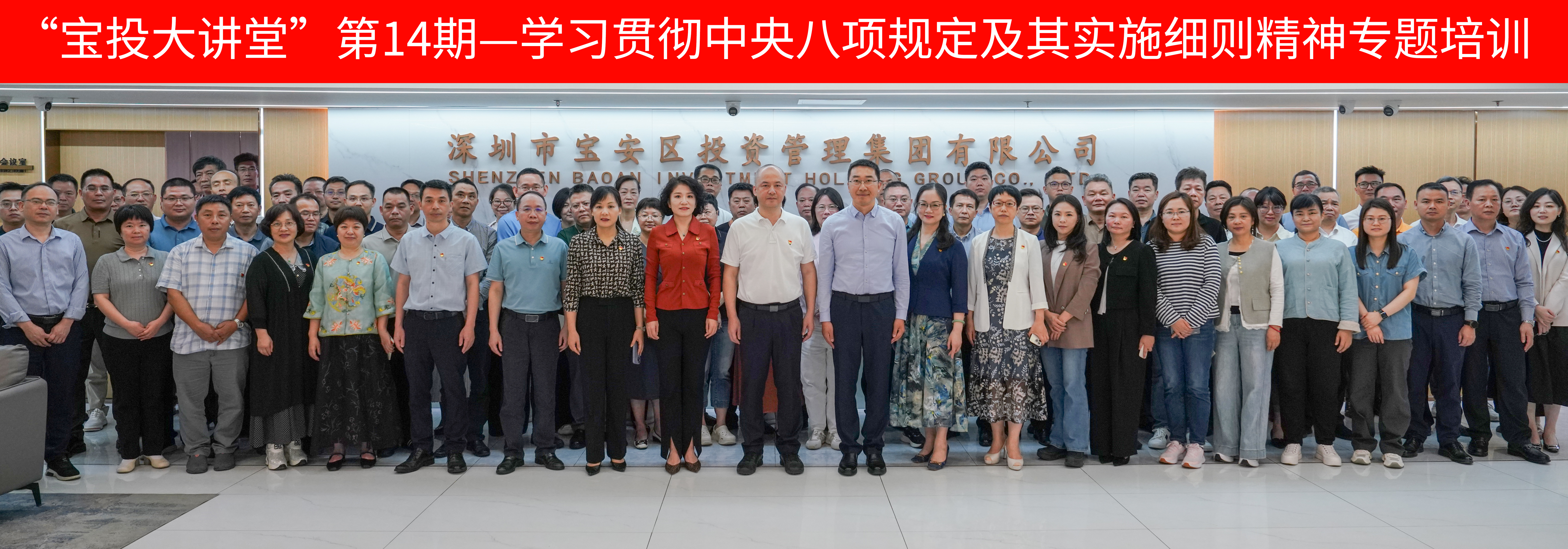 为深入学习贯彻习近平总书记关于贯彻中央八项规定精神学习教育的重要讲话和重要指示精神,4 月 27 日上午,宝投集团举办了 “宝投大讲堂” 第 14 期 —— 学习贯彻中央八项规定及其实施细则精神专题培训。集团公司领导班子、所属企业班子成员(包括参股企业外派高管)、本部中层正副职及外派财务总监共 102 人参加培训。